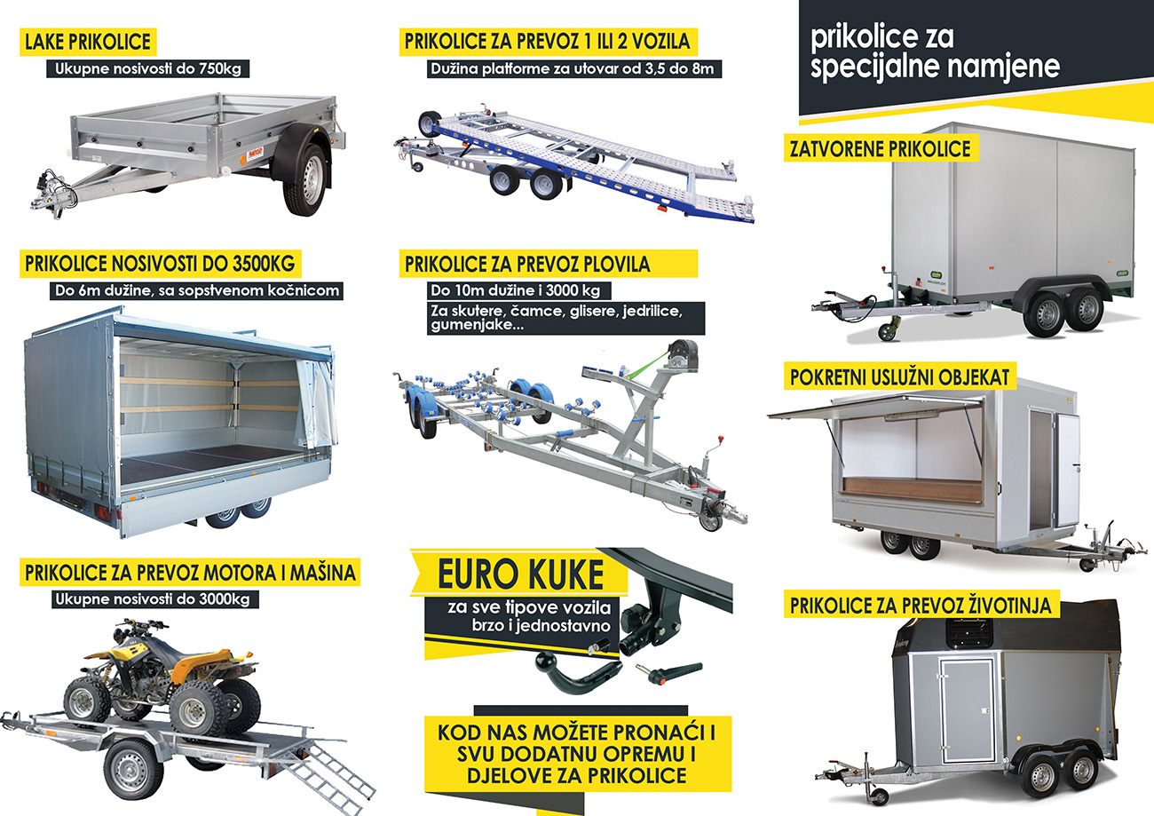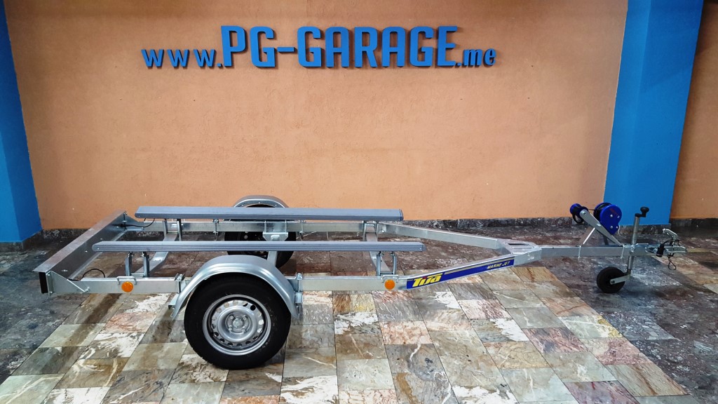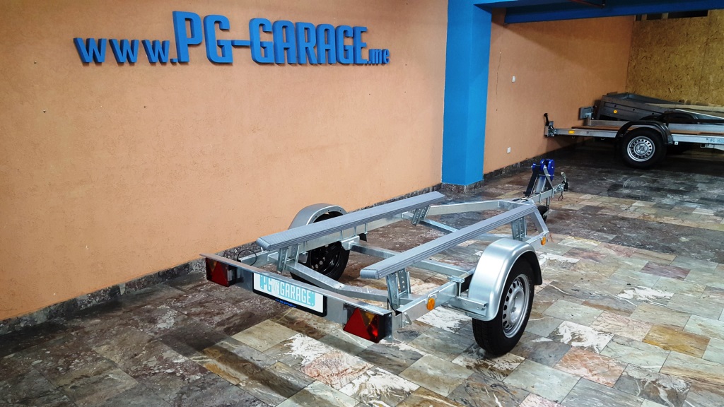 | Tekst oglasa | rikolica za prevoz skutera ili manjih čamaca; Prikolica posjeduje sve potrebne papire i trajno se registruje ili na ime kupca; Oslobođena tehničkog pregleda prve 3 godina; Fabricka proizvodnja, atestirana; Osovina vodootporna “KNOTT” Pomoćni točak; Vitlo “KNOTT” Mogućnost kupovine na kredit preko banke; UKUPNE DIMENZIJE 4,20 x 1,60 x 0,70m UKUPNA DOZVOLJENA NOSIVOST 550 kg TEŽINA PRIKOLICE 130 kg Generalni uvoznik za CG www.PG-GARAGE.me |