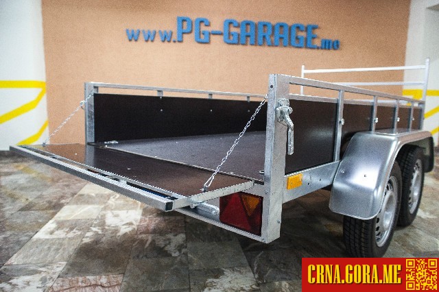 | Tekst oglasa | Prodajem prikolicu, PodgoricaCijena je sa PDV-om; NOVO; Dimenzije: 2,5x1,2x0,35m; Mogucnost kipanja; Pomoćni točak; Registracija trajno na trecu tablicu na ime kupca; Uvoznik auto prikolica za CG www.PG-GARAGE.me |